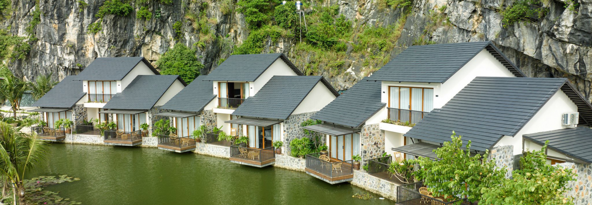 Family Villa has an area of 150m2, including 3 bedrooms, and 1 large living room. The first floor includes 2 large bedrooms with 1 king size bed and a living room, the 2nd floor includes 1 bedroom with 2 single beds. All rooms have large balconies with views of the lake and fields. Each Family Villa accommodates a maximum of 06 adults & 03 children under 06 years old.